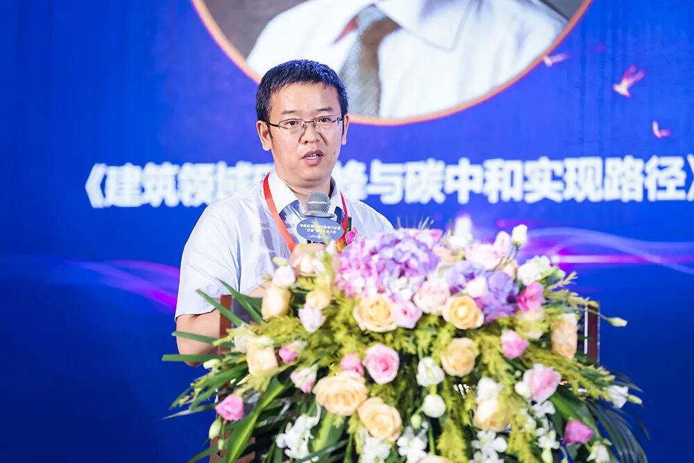 会议伊始,住房和城乡建设部标准定额司原一级巡视员倪江波为大会致辞,倪司长讲到:“习近平总书记指出,实现碳达峰碳中和是一场广泛而深刻的经济社会系统性变革,要拿出抓铁有痕踏石留印的劲头,如期实现2030年前碳排放达峰,2060年前碳中和目标。住房城乡建设领域各行业,必须充分把握这个新发展阶段的重大新要求新变化新内涵,充分认识到碳达峰碳中和将引领我们这个传统行业领域的深刻变革,迅速行动起来,一切工作和重点务必要从落实双碳目标任务上来把握。党的十九届五中全会提出,到2035年要广泛形成绿色生产生活方式。建筑领域碳排放有自身的独特性,尊重特点才能遵循规律,应当抓住抓准建筑领域碳排放的特点,坚持系统思维,从用户端发力,坚持节能减碳双控,统筹建筑建造、使用和改造、拆除全生命期,统筹建材等全产业链相关行业,统筹技术经济性,顶层设计好本地区本行业的碳达峰碳中和工作。立足新发展阶段,贯彻新发展理念,住房和城乡建设部围绕城乡建设绿色发展和碳达峰、碳中和战略要求,不懈努力,为行业的高质量绿色低碳发展做出贡献。”